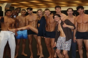 其中她分享了后台照,包括一张与10名男模的合影。